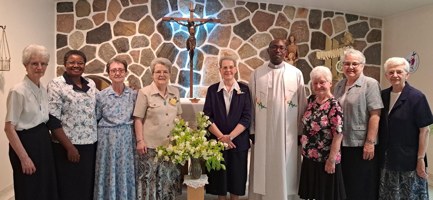 C’est avec beaucoup de joie que nous avons rendu grâce au Seigneur pour les 60 ans de vie religieuse de nos Sœurs Denise Lessard et Micheline Poulin à la Maison générale, au cours d’une célébration eucharistique le 9 juin 2025. Nos Sœurs nous ont partagé leur parcours depuis la formation initiale et on pouvait lire avec émerveillement au fil des années, les traces du Dieu fidèle, leur abandon entre ses mains pour correspondre à la grâce de l’appel reçu.