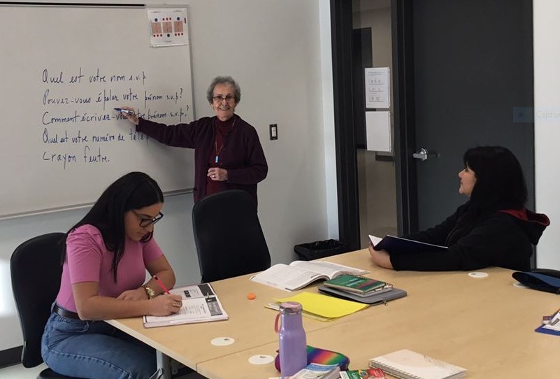 Travail en alphabétisation au Centre Mgr Marcoux pour des cours de français. Rencontre fraternelle pour créer des liens avec ces nouveaux arrivants du Mexique et du Brésil.